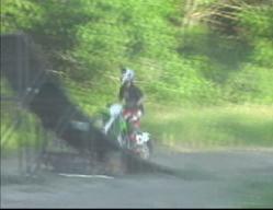 While working on this above mentioned motion, you will probably look like the image at left at least a few times. If you jump all afternoon and do this a hundred times, that's okay. It's all progression. Once you are comfortable bringning your knees to your chest and your angles up to the bars, you can start to push your knees over the front of the bike, and thrusting your pelvis up and forward. |