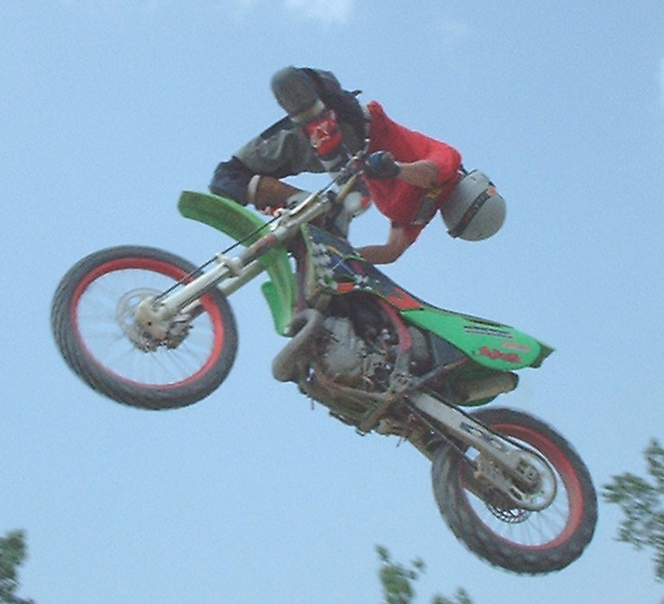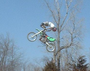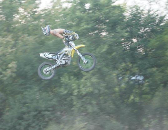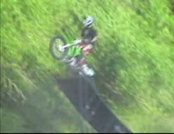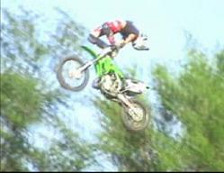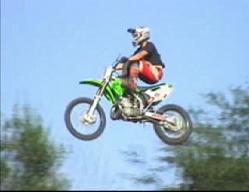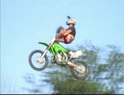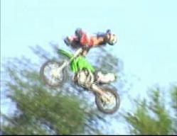 probably go through a phase where you're peak point will look like this. Its important that you have good judgement in the air so that you know when to bring your torso and legs back to the bike. A natural feel for the bike and the jump is necessary for doing these tricks because you can't see the landing as you are approaching it. Don't ever go to far. The natural flow is for the trick to peak as your bike is at or just past its highest point in the air. Work up to a full-out cordova in small increments because that is the best way to train your body how to do it.